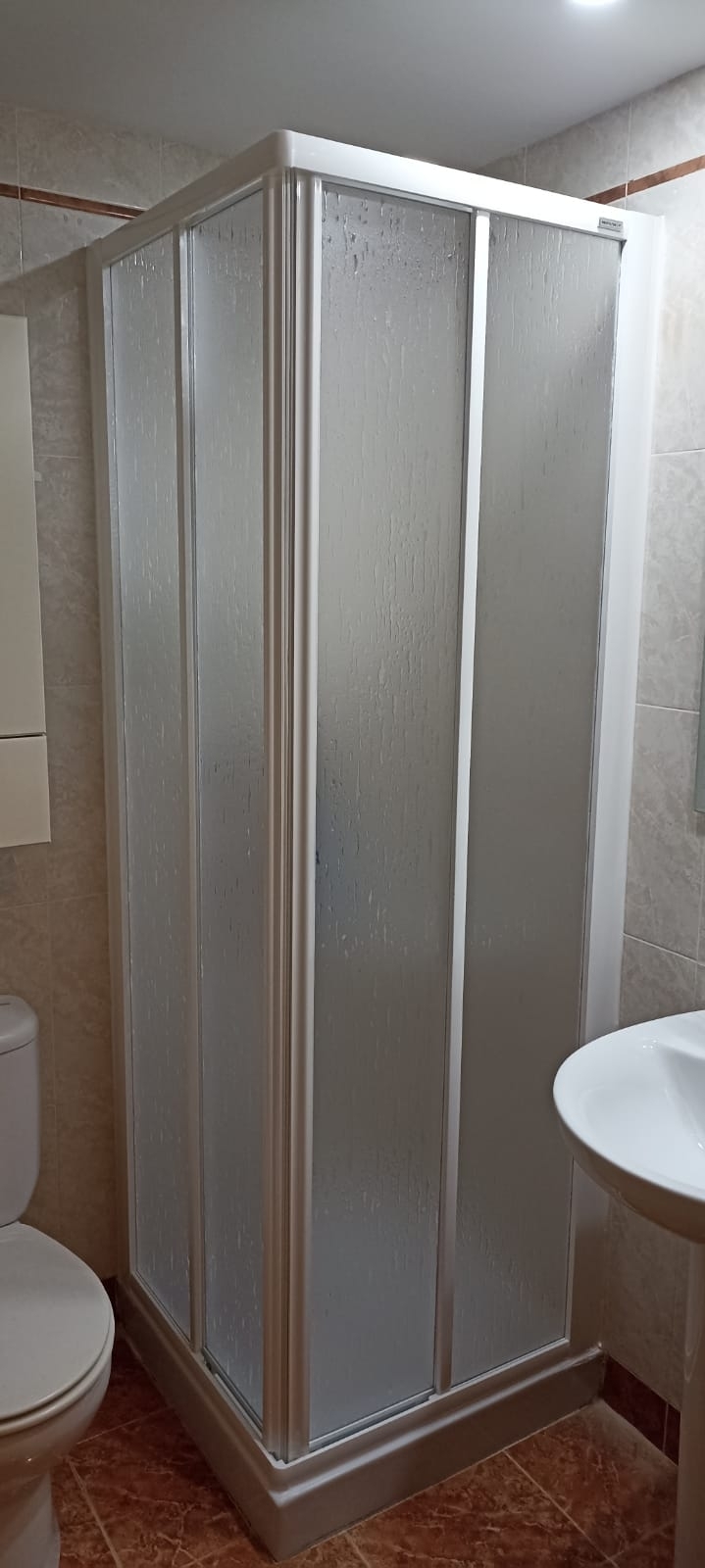 A este cliente le recomendamos una mampara de las medidas de su plato de ducha, quedó ajustada y se le instaló apropiadamente.