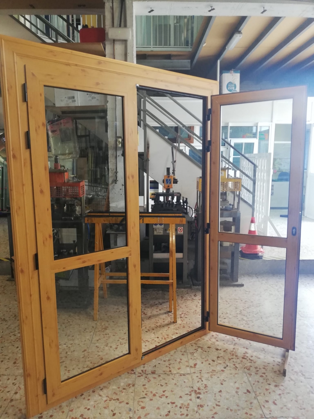 Las puertas de 2 hojas de aluminio en color madera pino nudo combinan la resistencia del aluminio con la calidez visual de la madera. Estas puertas destacan por su durabilidad, bajo mantenimiento y capacidad de resistir condiciones climáticas adversas. Su diseño de doble hoja ofrece amplitud y elegancia, siendo ideales para espacios modernos y clásicos. Además, en Alicante, son perfectas por su estilo que combina con entornos mediterráneos.
